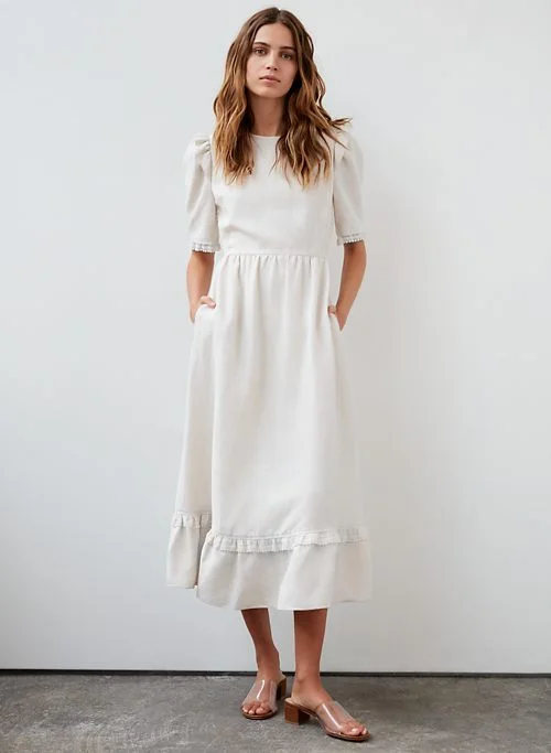 What better way to feel light and ethereal than to wear something symbolizing purity (and worn by the literal dead!)? I’ve shied away from lots of linen in the past—it tends to wrinkle and somewhat lacks the agility to move between seasons—but as I approach my fourth consecutive summer in NYC, I’m all in. I’m over sticky humidity and the willingness to sacrifice comfort, thus my summer wishlist is full of breezy linen dresses—though shorts, tops, pants, and jumpsuits are scattered about as well.